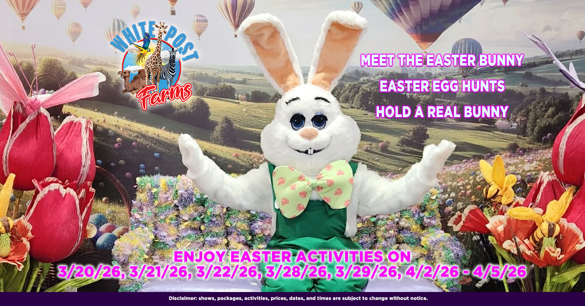 After meeting the Easter Bunny have fun holding one of our real live bunnies! April 13, 14, 15, 16, 17, 18, 19, 20