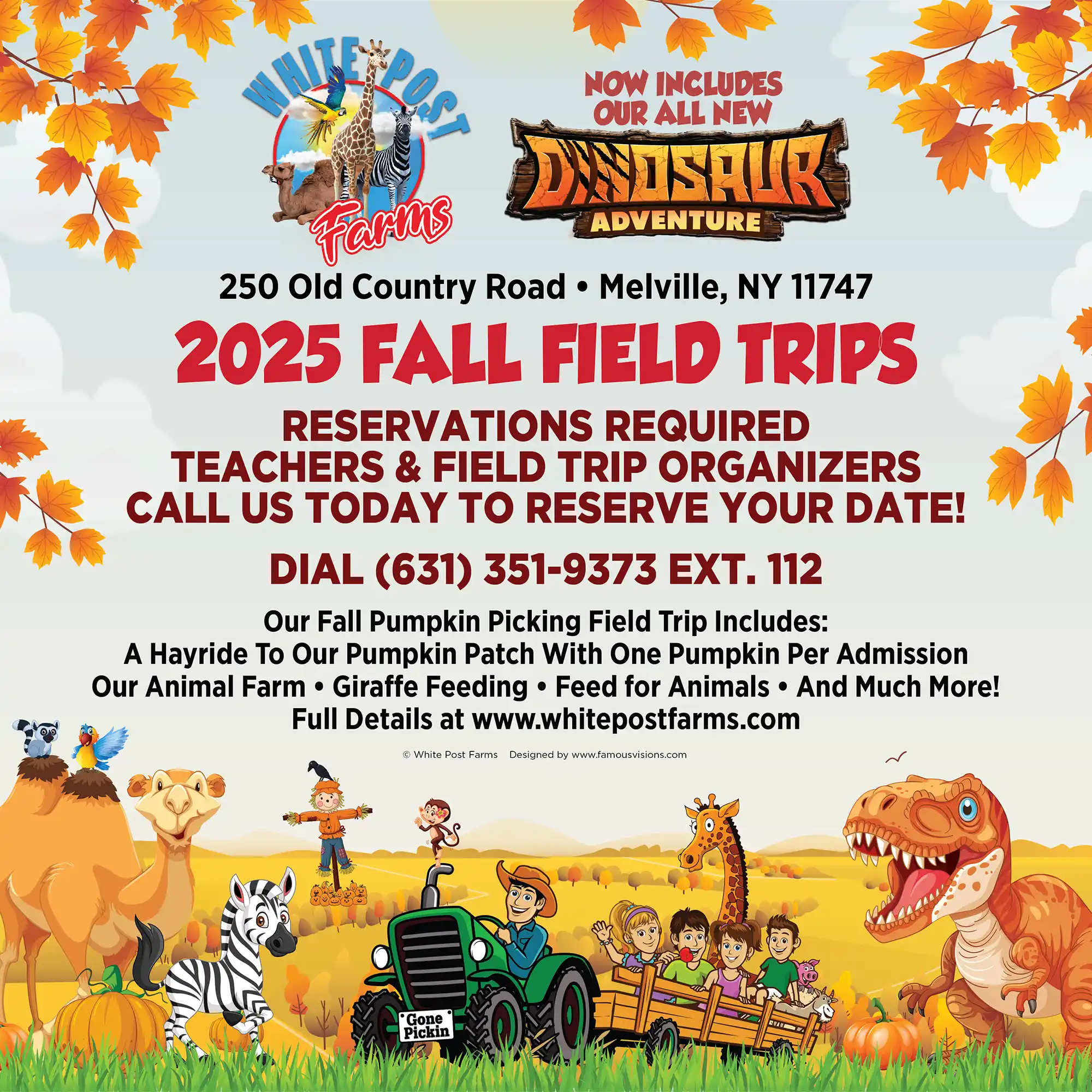 Enjoy an autumn hayride in our hidden Pumpkin Patch where every child and adult select their own personal pumpkin (up to 4 lbs. per person) & bag to hold the pumpkin. Afterwards, spend the day at our scenic farm visiting the animals. Kids can visit our: